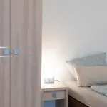 Der Innenraum ist auch mit Parkettbodenbelag sowie einem Balkon und einer Sitzecke ausgestattet und verfügt über einen Flachbildfernseher mit Satellitenkanälen. Für Ihren Komfort stehen Ihnen im Apartment eine getrennte Toilette, eine Badewanne und eine Dusche zur Verfügung. Zudem finden Sie im Badezimmer einen Haartrockner, Toilettenartikel und Handtücher.